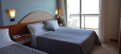(mq. 33) dotata di piccolo disimpegno, composta da due camere comunicanti, comode ad ospitare un massimo di 6 persone, con due bagni e due balconi vista mare (mq. 10)